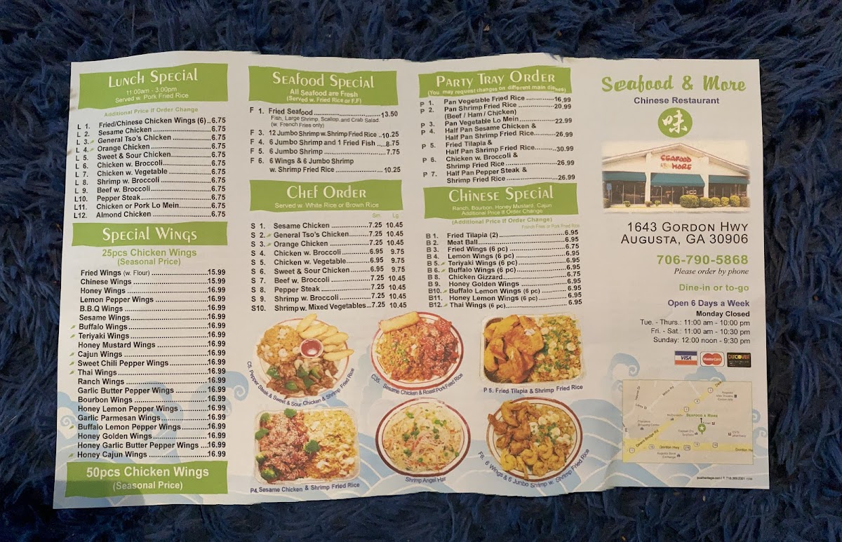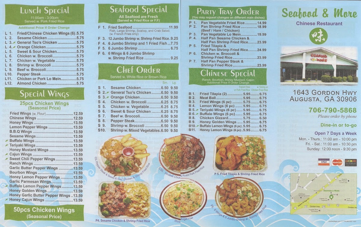 Welcome to Seafood and more, located at 1643 Gordon Hwy in Augusta, GA, where comfort food meets flavor in a cozy atmosphere. This beloved local spot offers an eclectic menu, bringing together classic Chinese dishes and unique seafood options that will tantalize your taste buds.